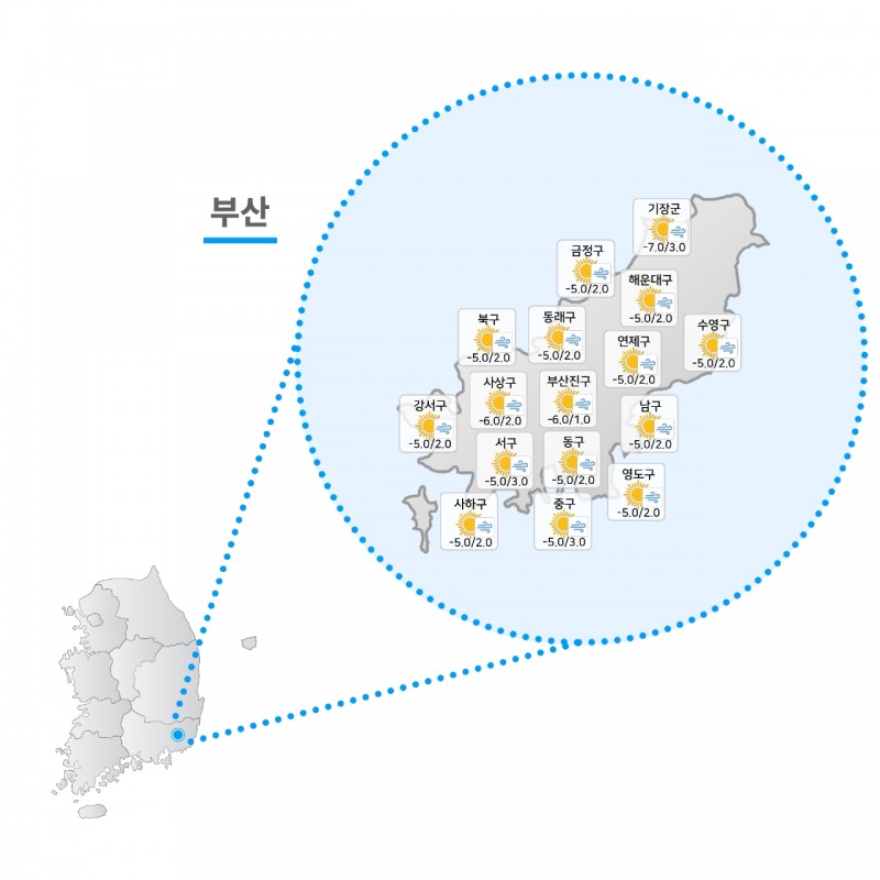 / 오늘날씨 부산 / 오늘(8일) 날씨 부산 지역 날씨 구름 많고 맑음...최고기온은 5~7도 - 가족을 위해 부산 최고 깡패 학교'최강고'에 자신만의 갱을 만들기 위해 전학가는데.
